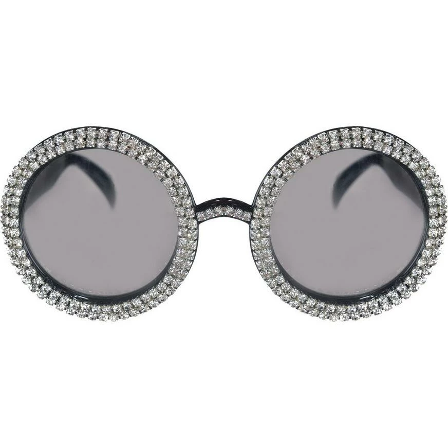 Disco-inspired! Get Groovy with these 70s Oversized Crystal Sunglasses! This accessory is made with black, plastic, round frames, tinted lenses and glass beads embellishments around frames. Complete your 70s look with these stellar sunnies!
