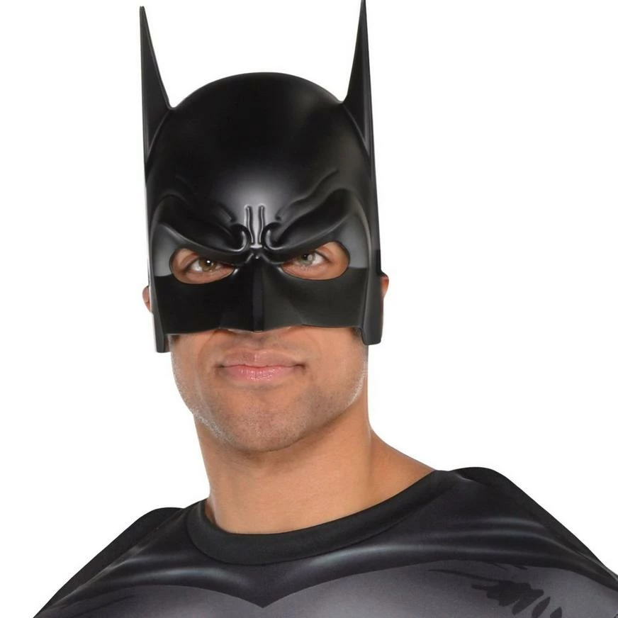 Quick, to the Batmobile! Protect Gotham City from all the supervillains wearing this Dark Knight Mask! This plastic mask is black with wrinkle details and pointy ears designed to look just like Batman’s signature mask. You can wear this mask as a foundation to the rest of your Batman costume. The Joker will stand no chance against you when you wear this mask! Shoes, shirt, and pants not included.