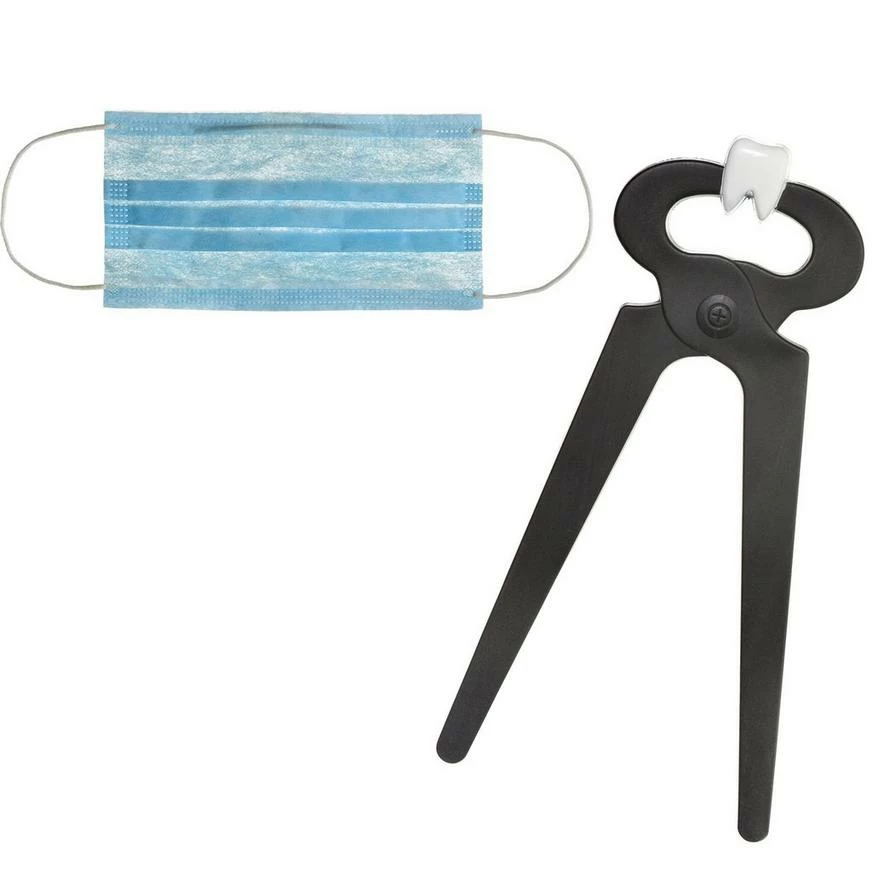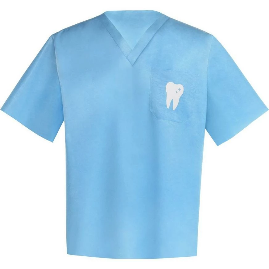 This dentist costume kit is the stuff nightmares are made of! It includes a scrub V-neck shirt with a sparkly tooth printed on the breast pocket, an oversized tooth extractor, a surgical mask, and a pair of safety glasses.