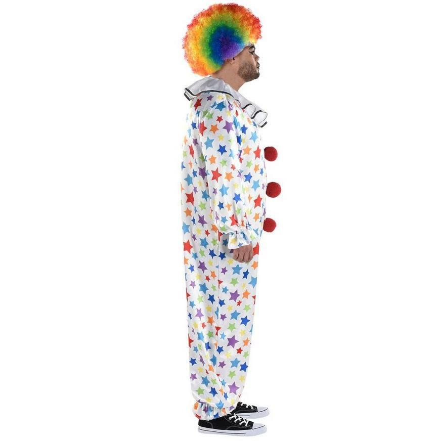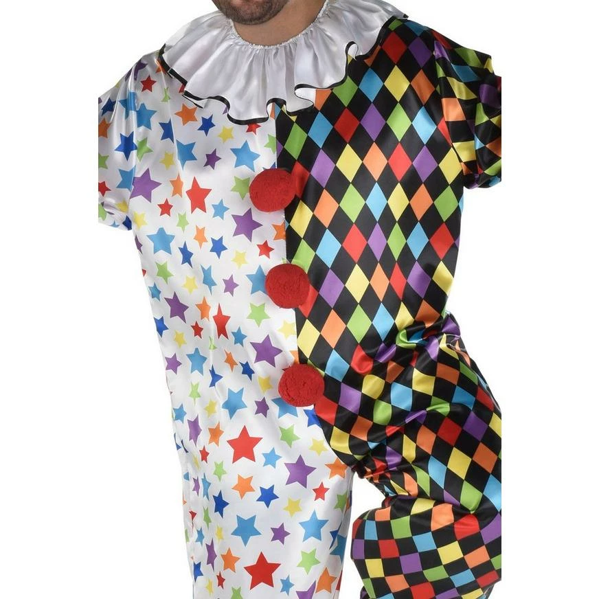 It’s easy to forget, especially around Halloween, that most clowns are friendly. Remind everyone of the circus clowns that bring nothing but rip-roaring laughter with the Friendly Clown costume! The costume is a polyester jumpsuit that’s printed half and half with harlequin and star patterns. The jumpsuit also features three red pom-poms and a large ruffle collar.