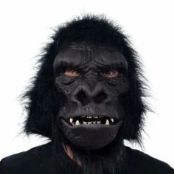 Unleash your wild side in this gorilla mask! Made of natural latex with attached synthetic hair, this mask is full of realistic details. The wrinkles, teeth, nostrils, and hair make this mask look like the real thing.