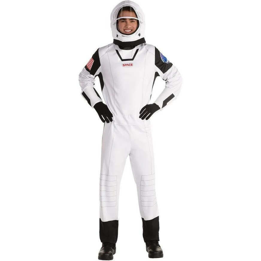 The world is your oyster when you’re dressed in this In-Flight Astronaut Costume. It includes a white jumpsuit with printed patches, a pullover twill helmet, and a pair of black gloves to keep you insulated.