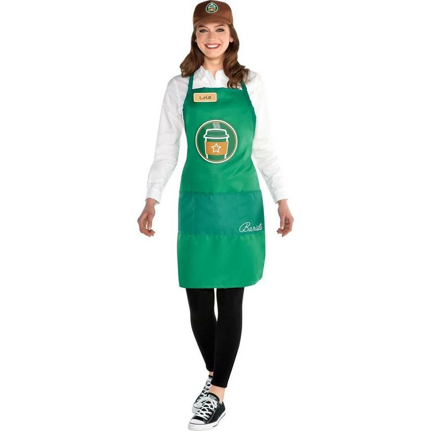 Brew up a good time on Halloween in a Barista Costume Accessory Kit for adults! The accessory kit includes a brown hat with a coffee logo, a green apron with the same logo and a “Barista” headline, and a name tag. Get ready to serve a cup of joe to everyone at the costume party dressed as a barista! Shoes, shirt, and pants not included.