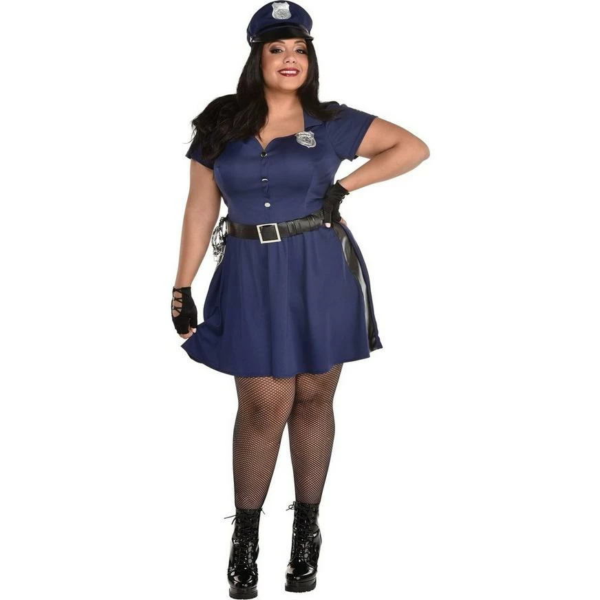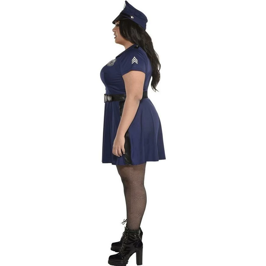 Look real good reading them their rights in the Miranda Rights Cop costume! This police officer costume features a navy blue skater dress with a silver badge on the chest. A black belt, silver handcuffs, and a police hat complete this smokin’ look!