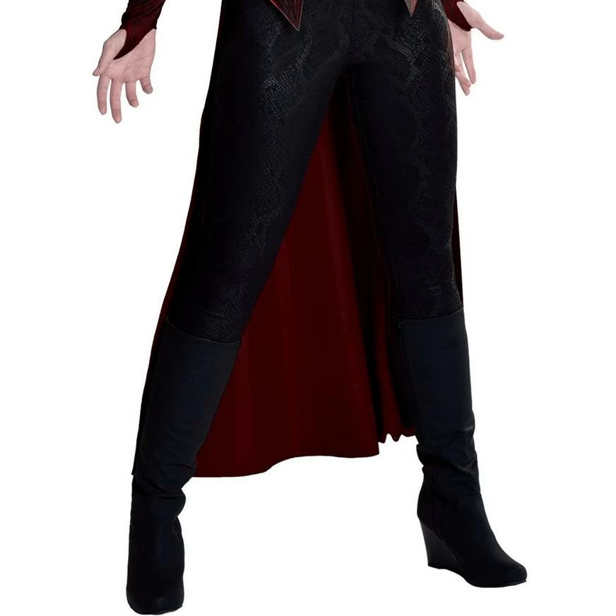 Chase America through the multiverse in this Scarlet Witch costume set. The deep red, long-sleeve shirt is printed with contours and textures and features a flowing, ankle-length train. The felt belt extends the shirt over the hips to give it the structure of armor and the intricately molded mask completes the look.