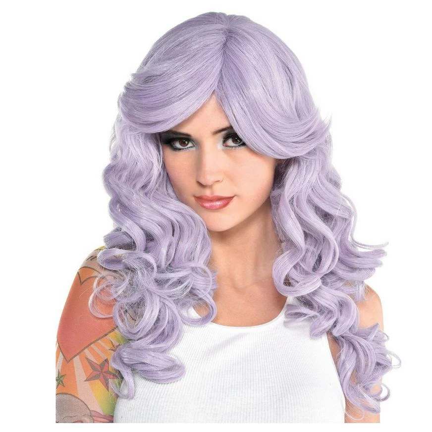 Add an elegant touch to your Halloween costume with a Dusty Lavender Wig! This curly long wig is dusty lavender colored. Pair this wig with dusty lavender clothing and accessories (sold separately) or simply use it to accessorize any other costume idea. If purple is your color, a Dusty Lavender Wig will look great on you! Shirt not included.