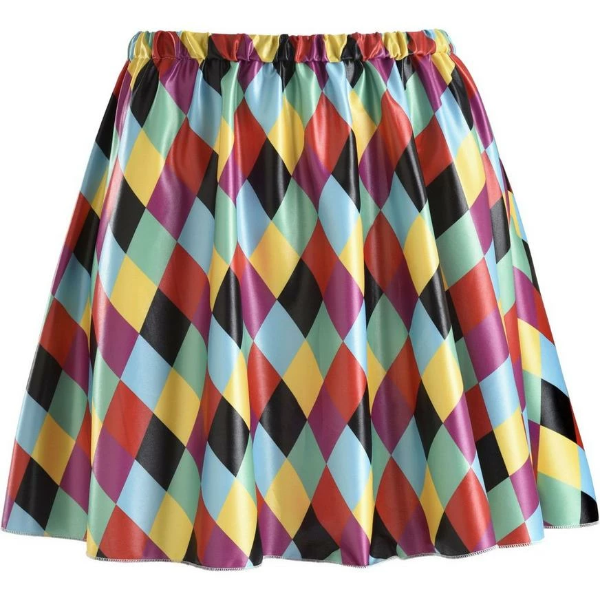 Clown around this Halloween in this colorful harlequin print skater skirt and matching bow tie set. The included red suspenders add even more vibrance and are adjustable so you can find your perfect fit.