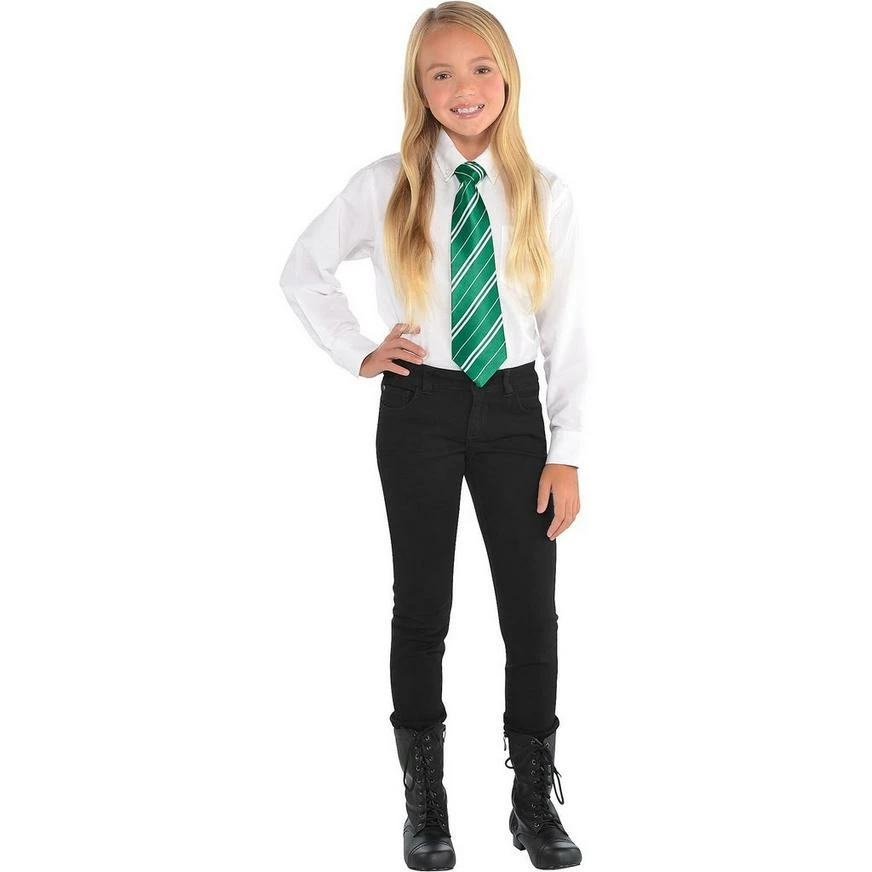 Now your little one can join Draco Malfoy and the rest of the pure-blood students in Slytherin in a Harry Potter Slytherin Tie! The polyester tie features green and white stripes. Pair this tie with a white value-up shirt, black pants, and a black robe to create a Slytherin costume for your child. Watch your little one cast spells at the classroom costume party in this Slytherin Tie! Shoes, shirt, and pants not included.