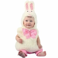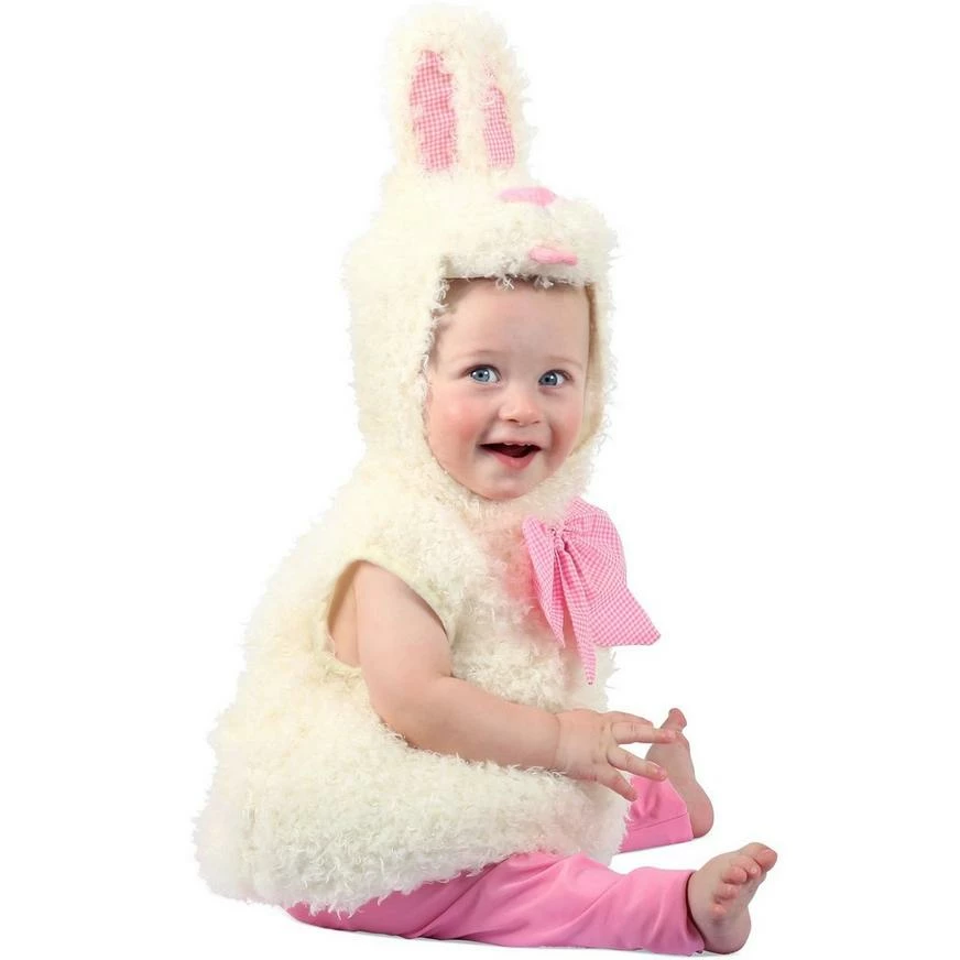More on Baby Gingham Bunny Costume: Keep your little kitten nice and warm with this Gingham Bunny Costume for babies! The adorable jumpsuit has them covered from head to tail in soft polyester fabric, with a plush rabbit head hood and a pink gingham bow tie at the neck. Slip on the pink footless tights and they’ll be the most adorable animal hopping around town for yummy treats this Halloween! Review the size chart for additional information.