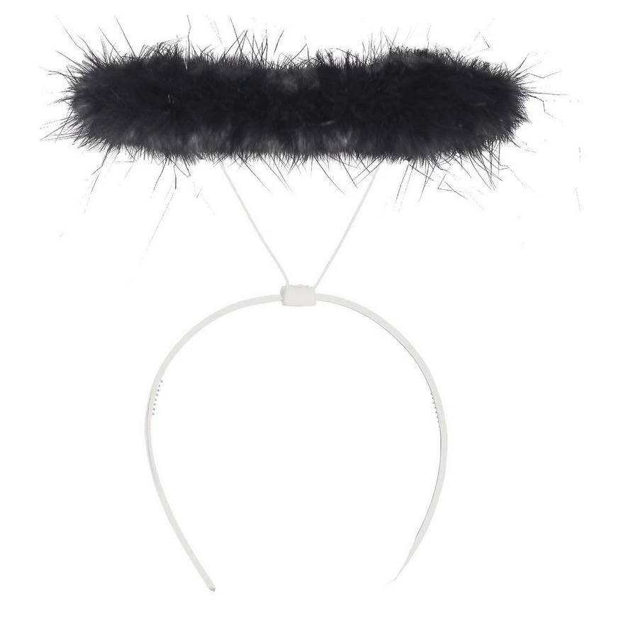Complete your fallen angel look with our Black Marabou Halo. This classic dark angel halo features a sinfully soft marabou lined circlet attached to an adjustable headband. One size Black Marabou Halo fits most. For ages 14 and up.