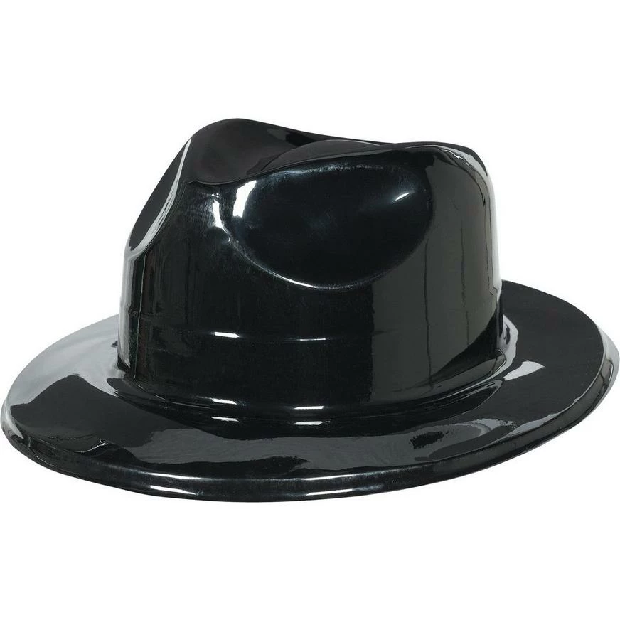 Be the best-dressed fan in the spirit section with a Black Plastic Fedora! This lightweight plastic fedora in black adds a touch of sophistication to any outfit. This novelty hat makes a funky topper for a ’20s-themed party or game day party favor!