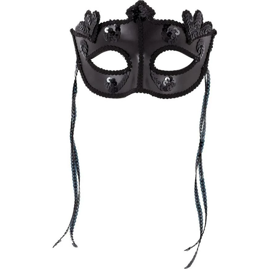 Keep your identity a mystery by accessorizing with a Black Sequin Masquerade Mask! The matte black masquerade mask features designs lined in black sequins and secures with an elastic and matching sequin ribbon. Pair this mask with your masquerade costume to create a unique outfit for your next masquerade party or Mardi Gras event!