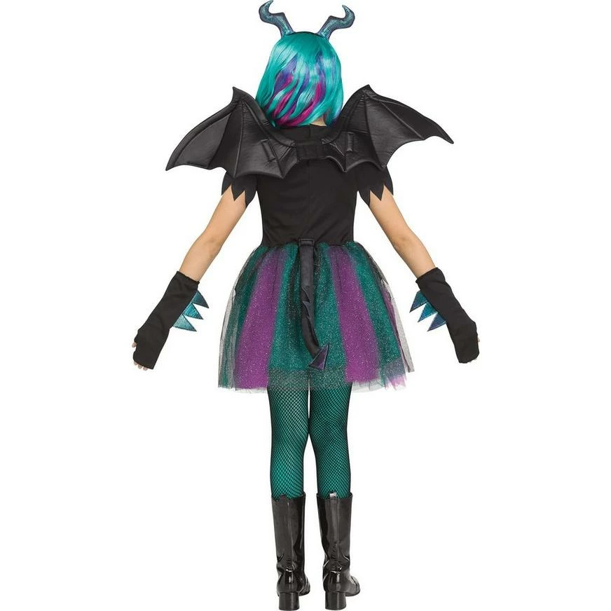 Allow your little one to live out their most fantastic dream in this dark dragon costume for kids. Included in the set are sleevelets, wings, and a dress that features iridescent scales and a glittering tulle skirt. Add on the horn headband as a finishing touch, and they’re ready to soar through the town on Halloween.