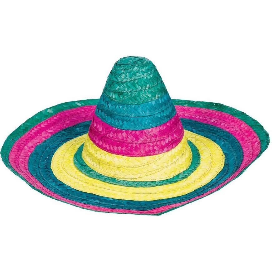A rainbow display of woven hay! The Fiesta Sombrero brings bright color to your attire and features wide bands of forest green, fuchsia, and sunshine yellow on the broad brim and high conical crown. It’s 100% straw, cool, and comfortable, making it perfect for a fiesta party or Cinco de Mayo party.