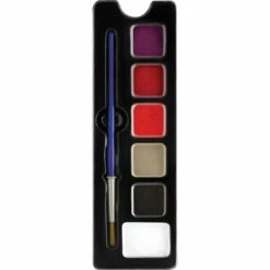Get your zombie makeup on point this Halloween with the Horror Palette Zombie Makeup Kit. This kit features a premium applicator brush and a palette of six fast-drying, water-activated, and non-smudge colors: undead purple, bruised red, red, dead guy gray, black, and white.