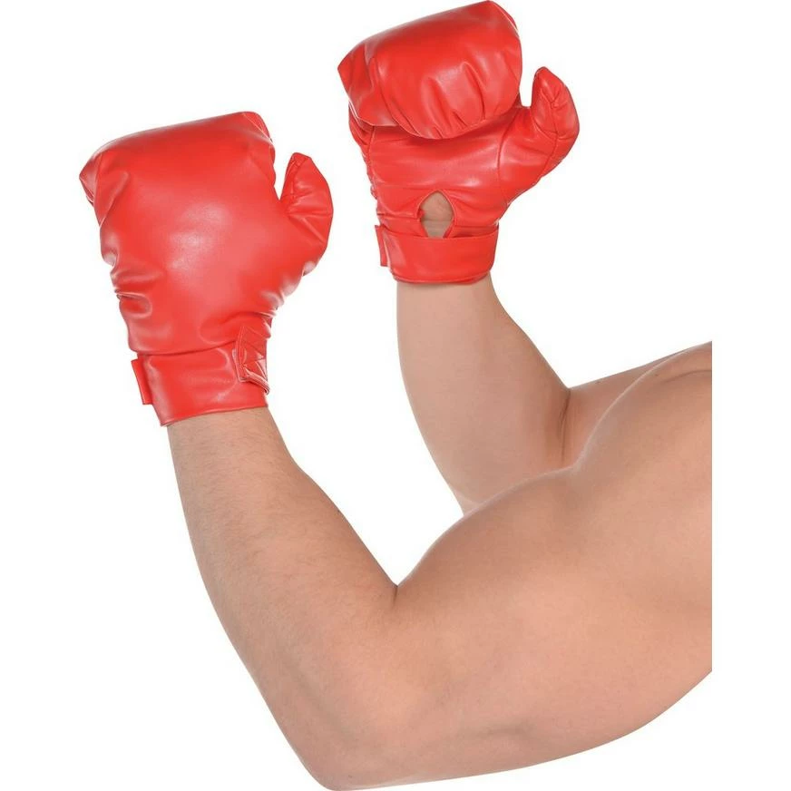 Knock out the costume competition with these Red Boxing Gloves! These boxing gloves feature a classic red vinyl design and include hook-and-loop closures at the wrists to adjust them for the perfect punch. Use these Red Boxing Gloves as part of your boxer costume for a truly tough look.
