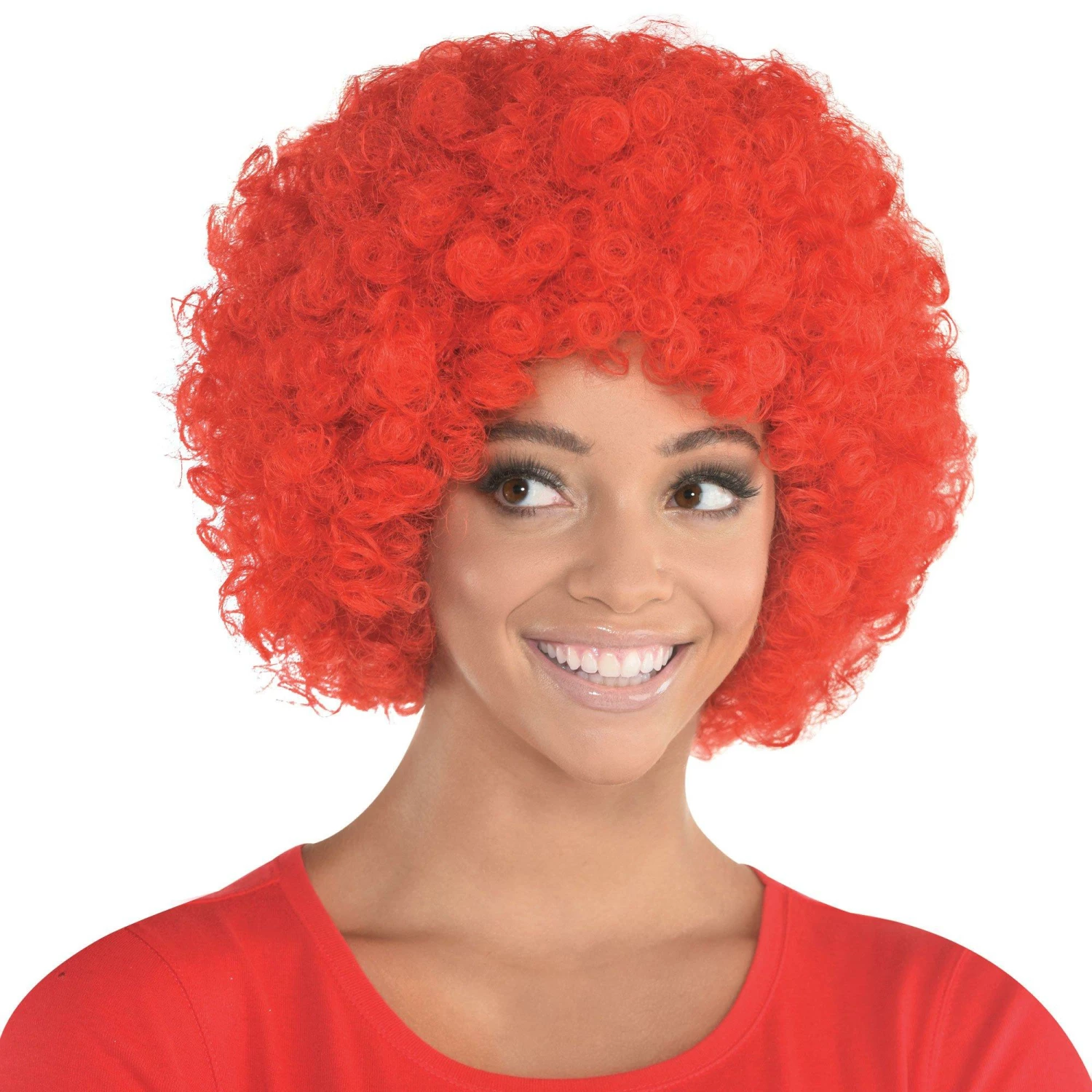 Our Red Curly Wig gives you the curls you’ve always wanted in a dandelion puff of flaming hair. An elasticized cap keeps this red wig on tight, no matter what the weather or score.