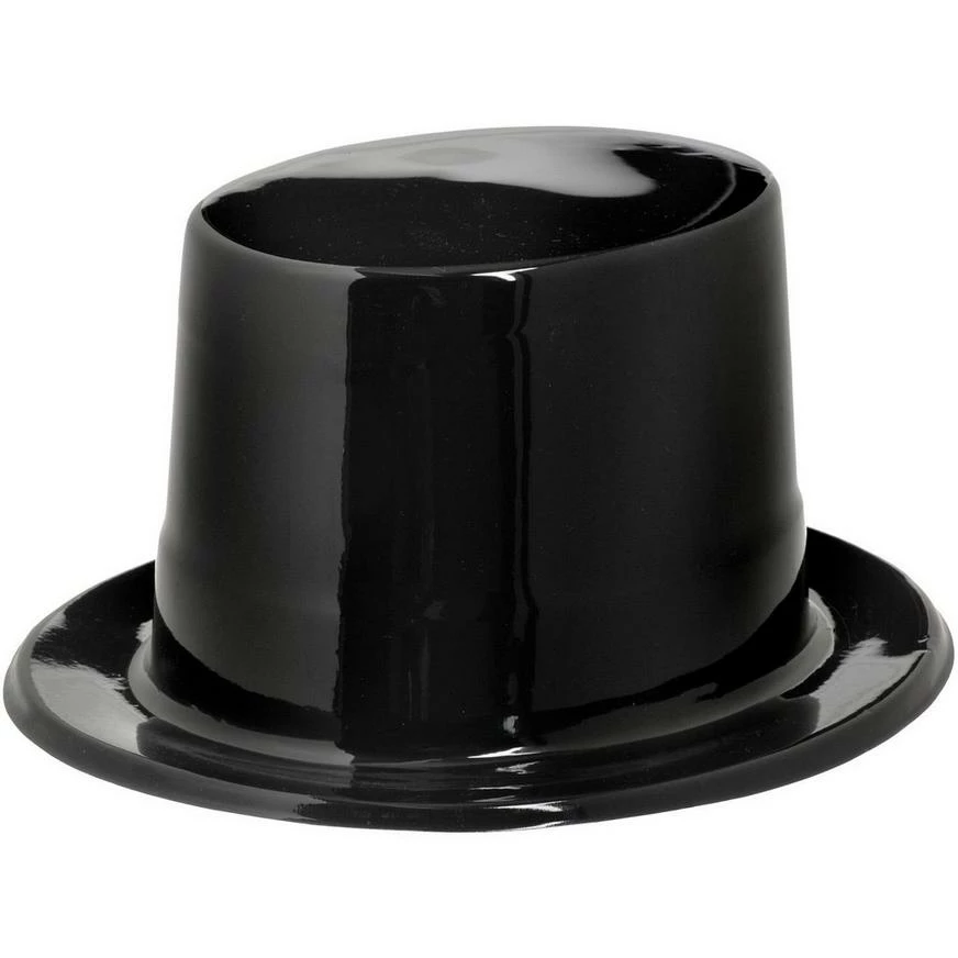 Bring out your inner Fred Astaire with a Shiny Black Top Hat! This vacuform top hat features a classic shape with a narrow brim and tall crown. Wear a plastic hat as part of a dapper look for a costume party or New Year’s Eve party!