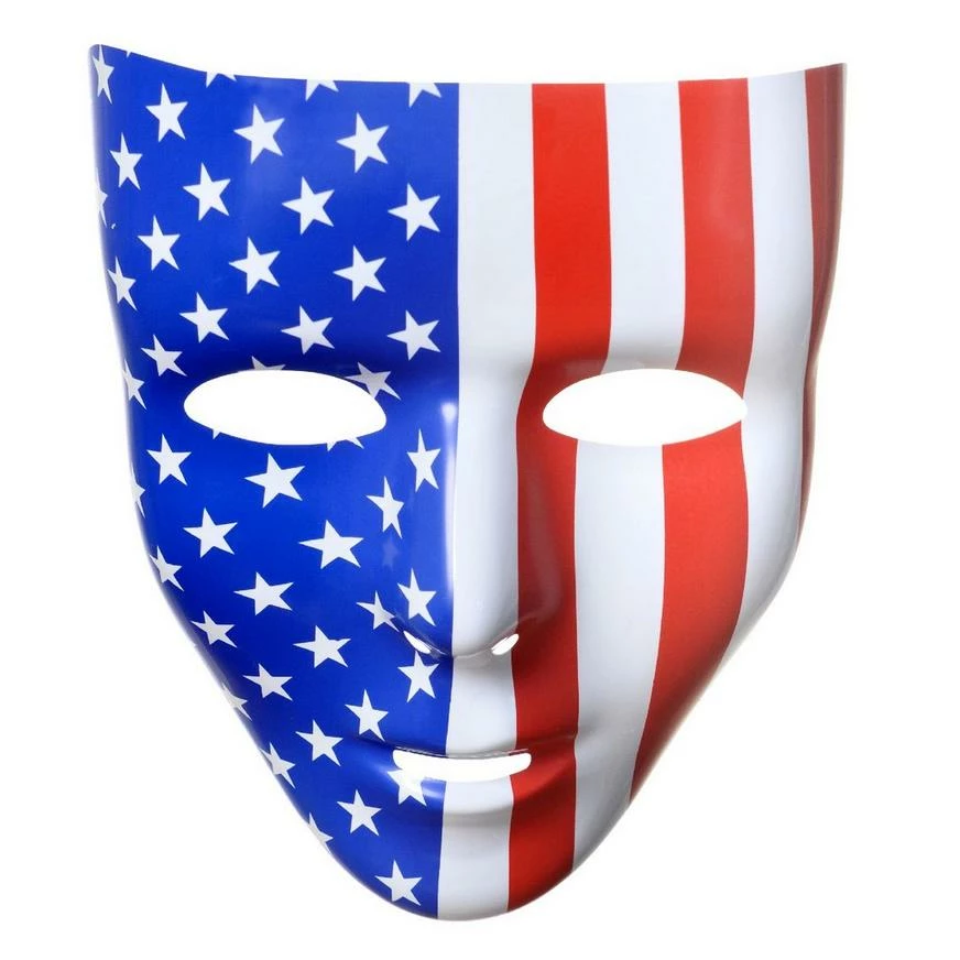 Become the face of the nation in a Stars & Stripes Face Mask! This plastic full-face mask is printed like the American flag with holes for the eyes, nose, and mouth. The attached elastic stretches for a comfortable fit. Wear it for a fun Fourth of July look, a patriotic Halloween costume, or a dedicated sports fan outfit!