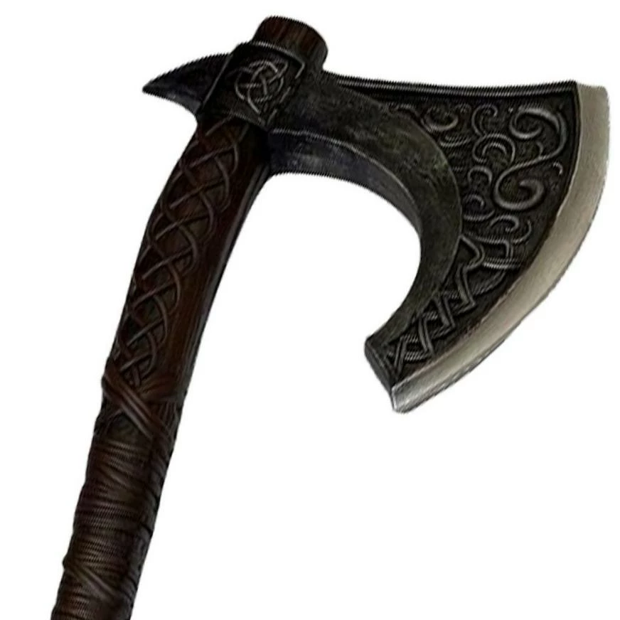 Channel ancient Norse power with a Viking axe! The perfect addition to your fantasy or Viking costume, this battle axe prop features an engraved blade and a brown vine-wrapped handle.
