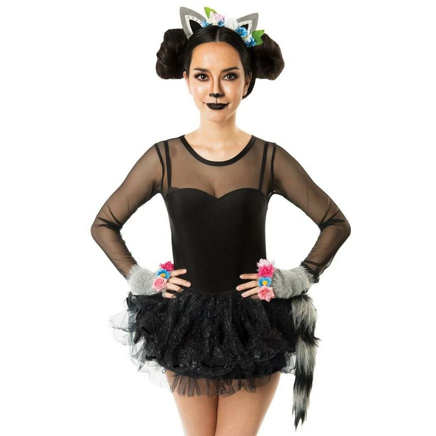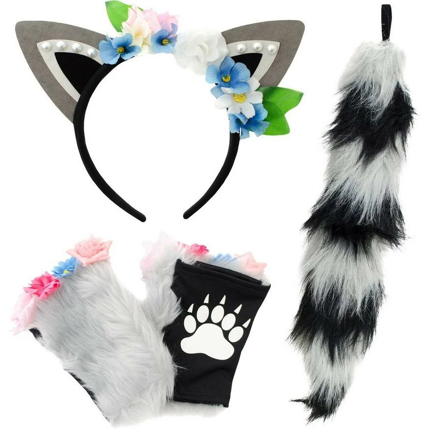 Be ready to raid some trashcans on Halloween in a Raccoon Costume Accessory Kit for women! Start with the headband with the attached raccoon ears and flowers. Match the headband with the included raccoon paw gloves adorned with flowers. As a finishing touch, put on the raccoon tail and you’re ready for a woodland adventure on Halloween! Makeup and dress not included.